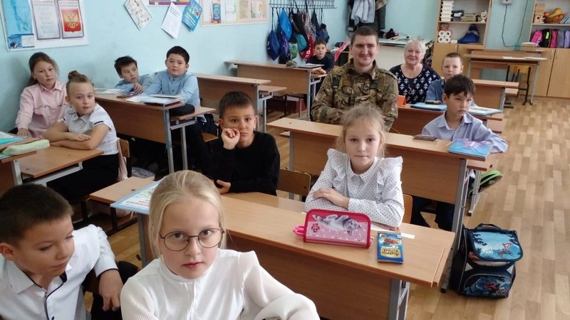 В свой предыдущий краткосрочный отпуск в 2023 году Алексей Викторович в сопровождении Елены Викторовны встречался с учениками 2«Б» класса, классный руководитель Елена Владимировна Ракитина. В этот приезд он решил им сделать неожиданный приятный сюрприз и вместе с Еленой Викторовной пришёл теперь уже к ученикам 3«Б» класса. Ребята были очень рады встрече и возможности пообщаться с Алексеем Викторовичем, задать ему свои вопросы и сказать слова благодарности.