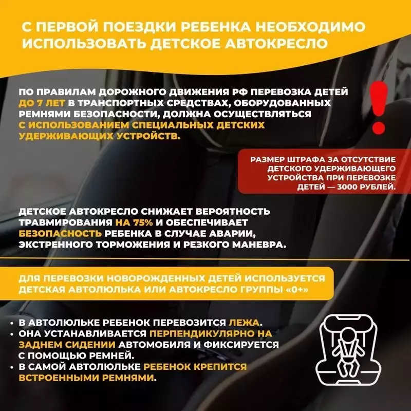 Перевозка детей в автомобиле требует особой осторожности из-за их физиологических особенностей. У детей менее развиты костная и мышечная системы, что делает их более уязвимыми при ДТП. В карточках рассказываем, как обеспечить безопасность ребенка в дороге и избежать штрафов за нарушение правил.